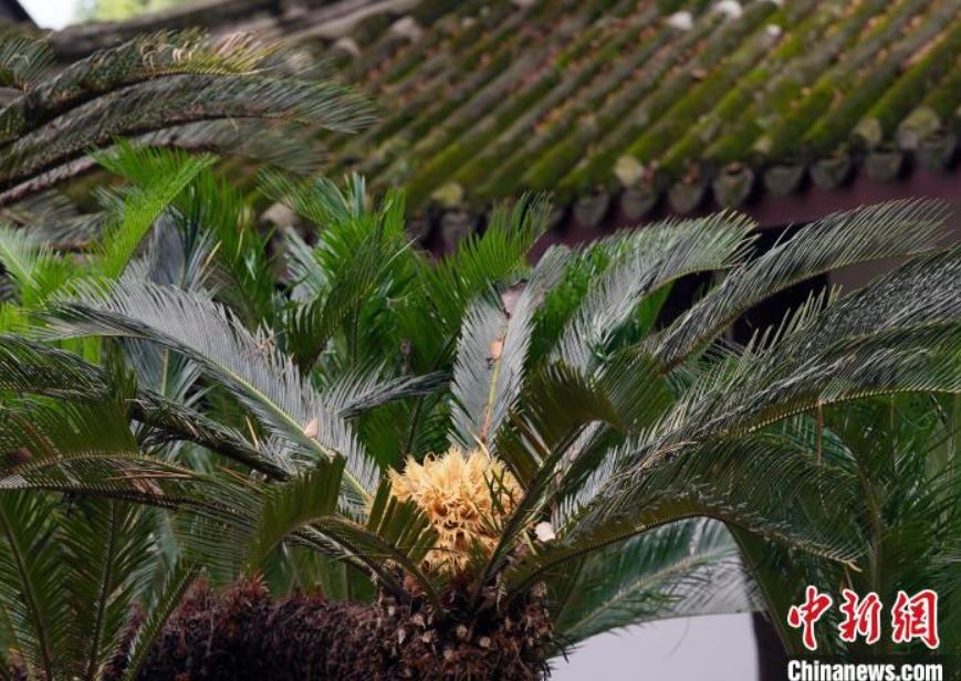成都杜甫草堂百年鐵樹開花引游人